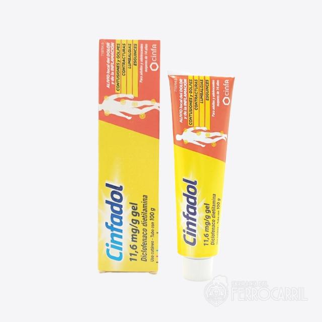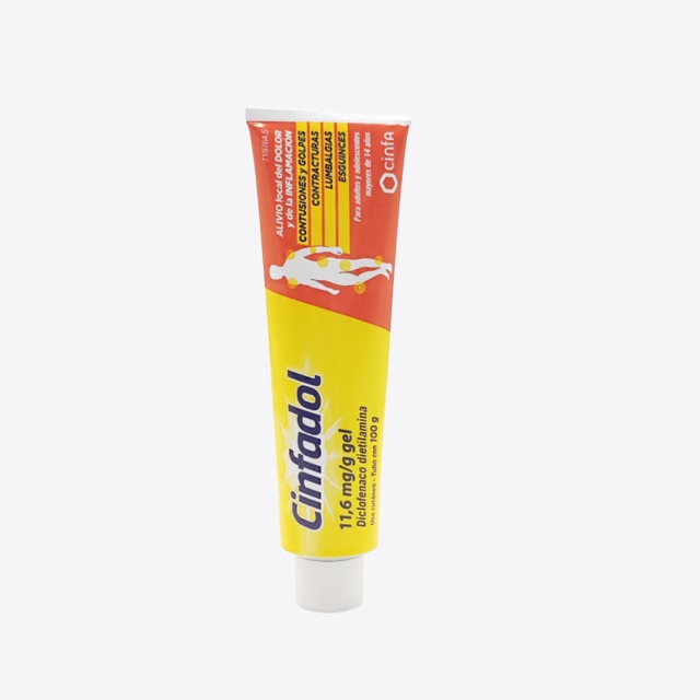 Cinfadol 11,6 mg/g gel 100g se trata de un medicamento con diclofenaco sódico, un activo que pertenece al grupo de los denominados antiinflamatorios no esteroideos (AINEs), y que cuenta con propiedades analgésicas y antiinflamatorias locales.