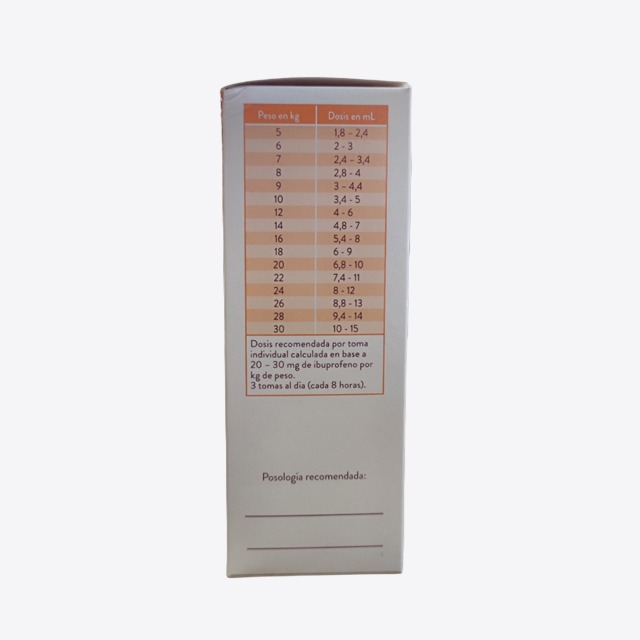 La dosis recomendada de ibuprofeno depende de la edad y del peso del niño.