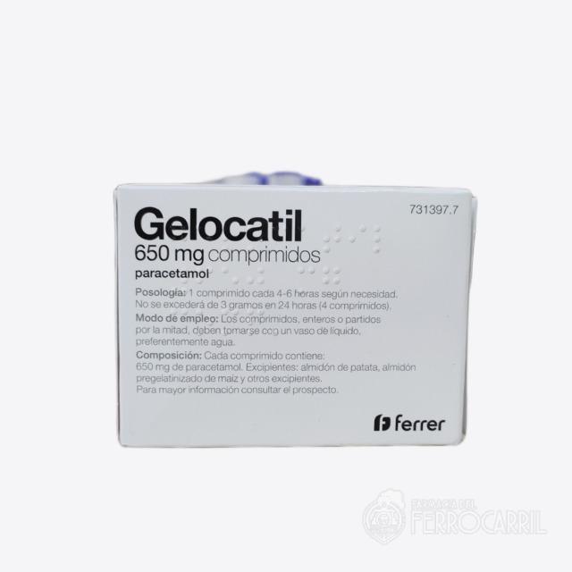 Gelocatil 650 mg 20 comprimidos se utiliza para el alivio del dolor leve a moderado y la fiebre a partir de 14 años.