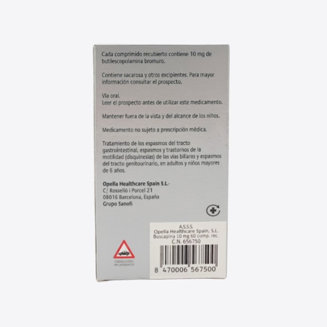 Buscapina 10 mg 60 comprimidos recubiertos es un medicamento que se utiliza principalmente para tratar espasmos en el tracto gastrointestinal, vías biliares y tracto genitourinario en adultos y niños mayores de 6 años, con propiedades antiespasmódicas que actúa sobre el músculo liso del tracto gastrointestinal, biliar y genitourinario.