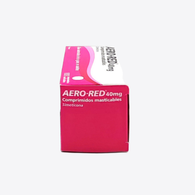 Aero-red 40mg 100 comprimidos masticables esta indicado para el alivio sintomático de los gases en adultos.