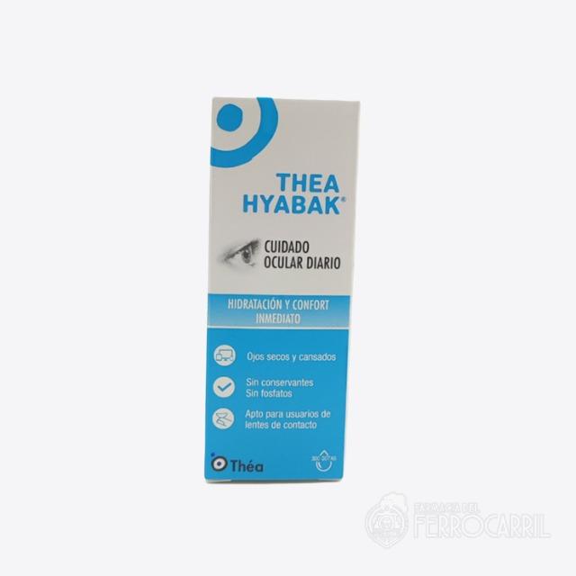 Thea Hyabak 10 ml está indicado para los ojos secos y cansados. Thea Hyabak 10 ml es sin conservantes, sin fosfatos y es apto para usuarios de lentes de contacto.