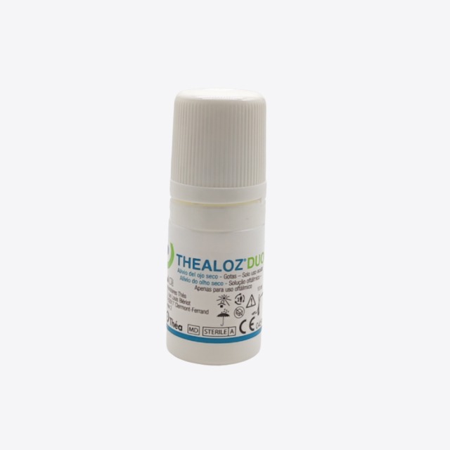 Thealoz Duo 10 ml es una combinación innovadora y patentada de trehalosa y ácido hialurónico. Protege, hidrata y lubrica el ojo para el tratamiento del síndrome del ojo seco de moderado a grave.