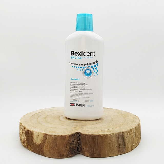 Bexident encias uso diario previene el sangrado y la inflamación por gingivitis. Antiséptico. Triple acción antiplaca. Remineraliza y protege el esmalte y tiene acción prolongada.