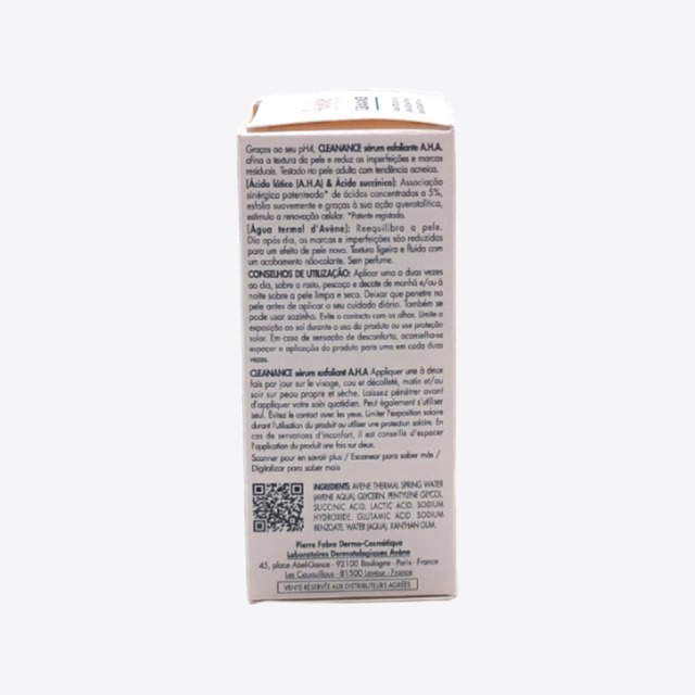Avene Cleanance sérum exfoliante AHA 30 ml contiene: