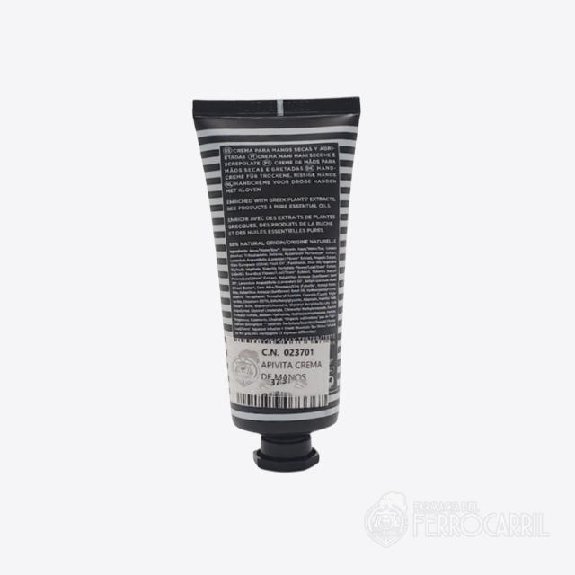 Apivita crema de manos 50 ml es una crema de textura enriquecida que recupera la hidratación perdida, hidrata de manera intensiva, repara las grietas y mejora la textura de la piel a la vez que la protege de los radicales libres.