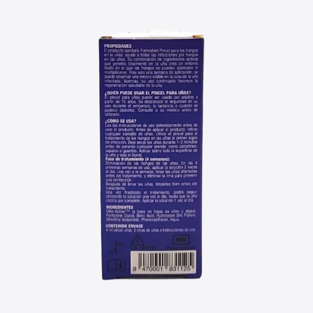 Farmafeet pincel para hongos 4 ml puede ser usado por adultos a partir de 16 años. Se desconoce la seguridad de su uso durante el embarazo, la lactancia o cuando se pasece diabetes. Consulte a su médico antes de utilizarlo.