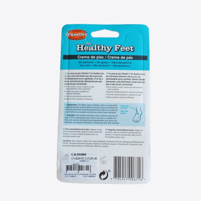 O'Keeffe's for healthy feet 91g es una crema hidratante muy eficaz para pies extremadamente secos y agrietados. Si se usa a diario, está demostrado clínicamente que esta crema de pies concentrada: