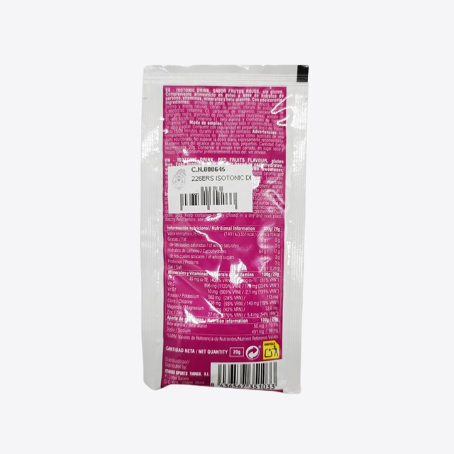 226ERS Isotonic drink frutos rojos 20 gr es una bebida isotónica, energética formulada con amilopectina, vitaminas, minerales y Beta Alanina.