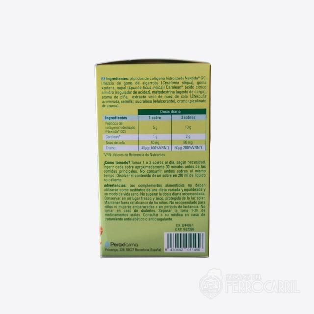 Al control y reducción del peso corporal, gracias a su contenido en Ceratonia Siliqua y Opuntia ficus infica (Carolean) y nuez de cola.