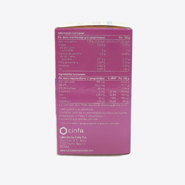 Lipoless NS 30 comprimidos es un complemento alimenticio con café verde, OB-X, Coleus Forskohlii, vitaminas D, E, zinc y cromo.