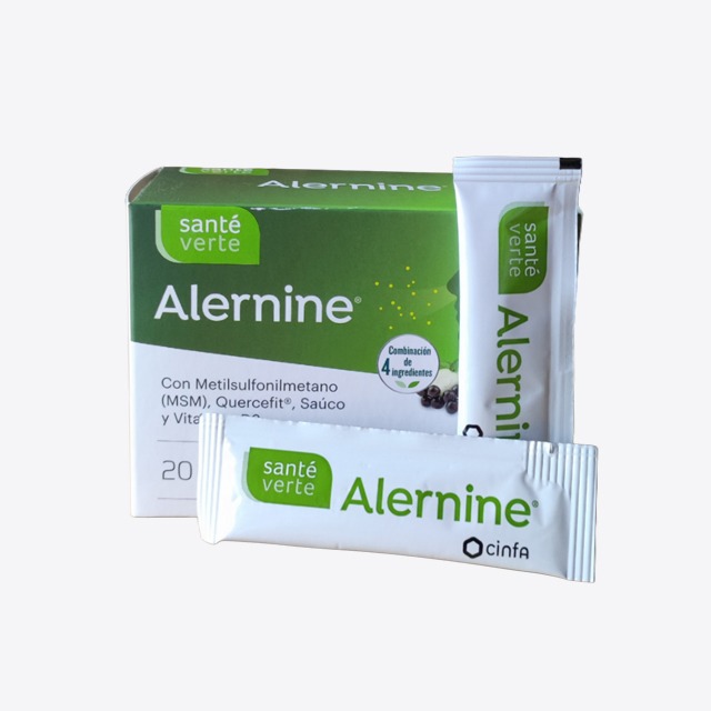 Alernine santé verte 20 sticks es un complemento alimenticio en sticks diseñado para ayudar a reducir los síntomas de las alergias estacionales y mejorar la calidad de vida durante los picos de polen y otras agresiones externas.