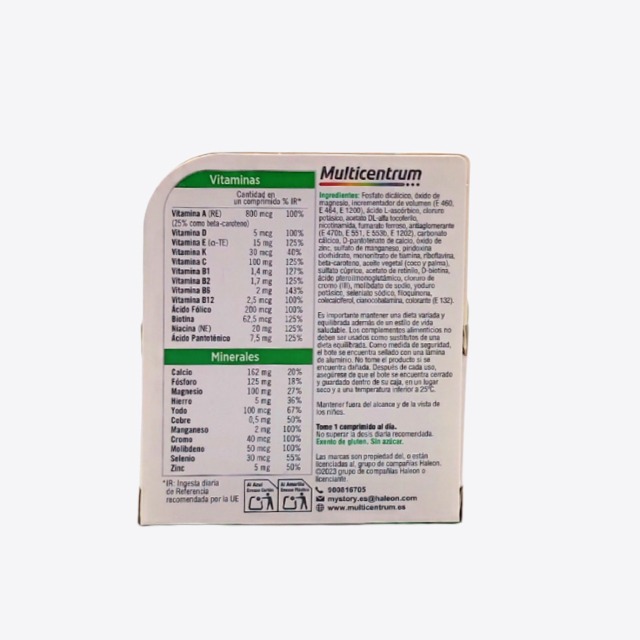 - Energía: con vitaminas B2, B3, B5, B6 y B12, que ayudan a disminuir el cansancio y la fatiga y contribuyen al metabolismo energético normal.