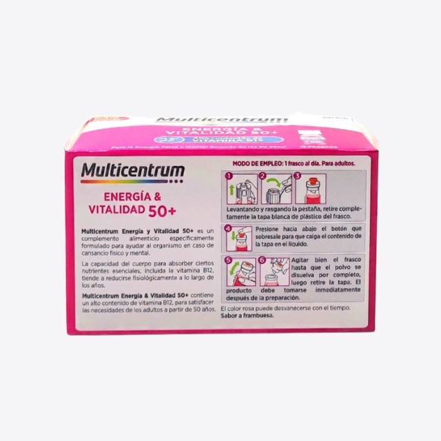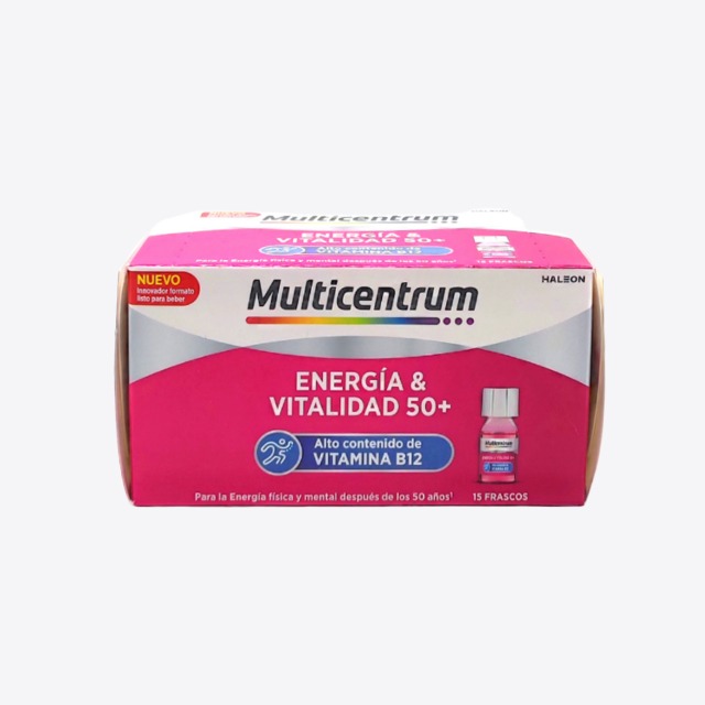 Multicentrum energía & vitalidad 50+ contiene un alto contenido de vitamina B12, para satisfacer las necesidades de los adultos a partir de 50 años.