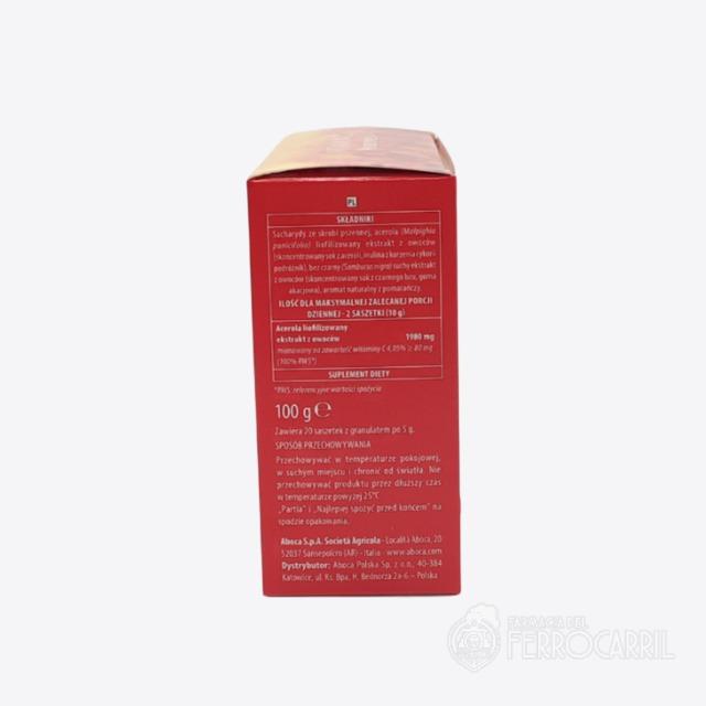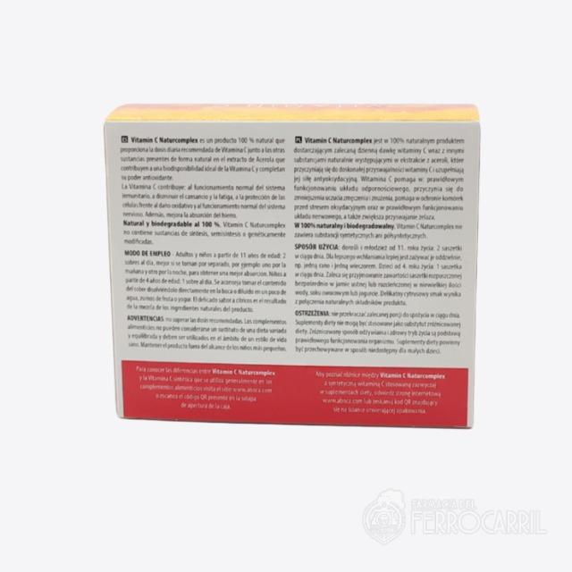 Vitamin Naturcomplex 20 sobres es un producto 100 % natural que proporciona la dosis diaria recomendada de Vitamina C junto a las otras sustancias presentes de forma natural en el extracto de Acerola, como los flavonoides (entre los cuales quercetina y antocianinas).