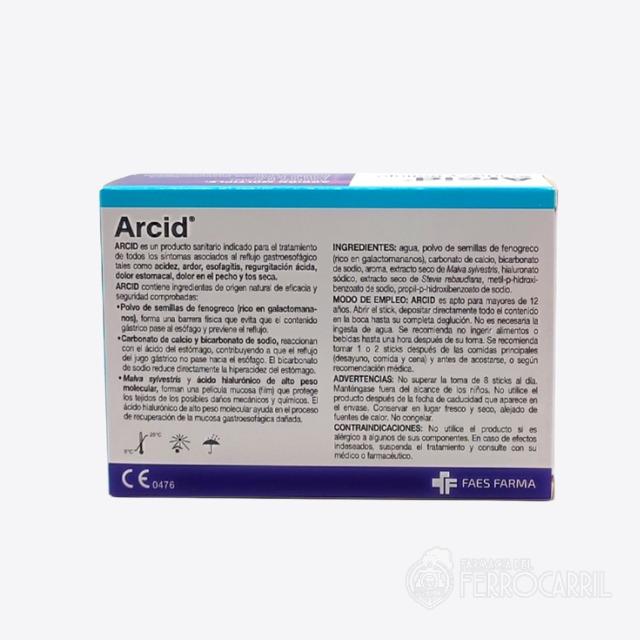 Arcid acidez y reflujo 24 sticks es un producto sanitario indicado para el tratamiento de todos los síntomas asociados al reflujo gastroesofágico.