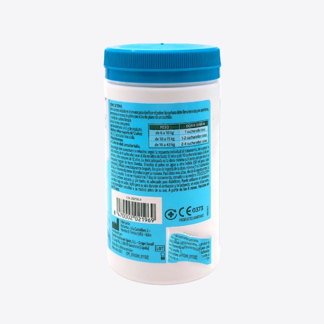 Use la cuchara incluida en el envase para dosificar el polvo: la cuchara debe llenarse a ras y no apretarse, desechando el exceso de polvo con el borde plano de un cuchillo.
