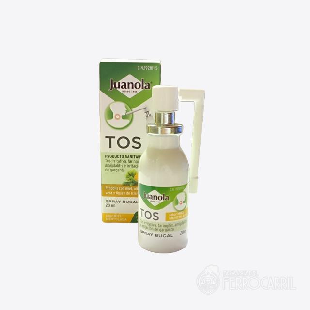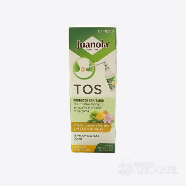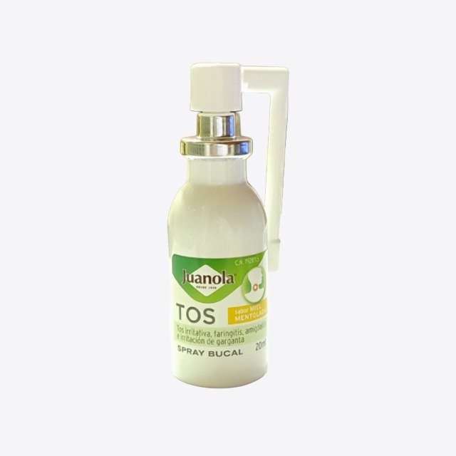 Juanola Tos spray bucal 20 ml es un producto sanitario para el tratamiento de las irritaciones de garganta causadas, por ejemplo, por faringitis, amigdalitis, reflujo gastroesofágico y tos irritativa.