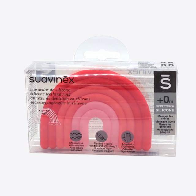 Suavinex mordedor de silicona +0m contiene distintos relieves que masajean las encías; los múltiples colores estimulan sus sentidos. Este mordedor, flexible y agradable al tacto, favorece el desarrollo de la motricidad fina: el bebé empieza a establecer fuerza y control de los dedos de sus manitas.