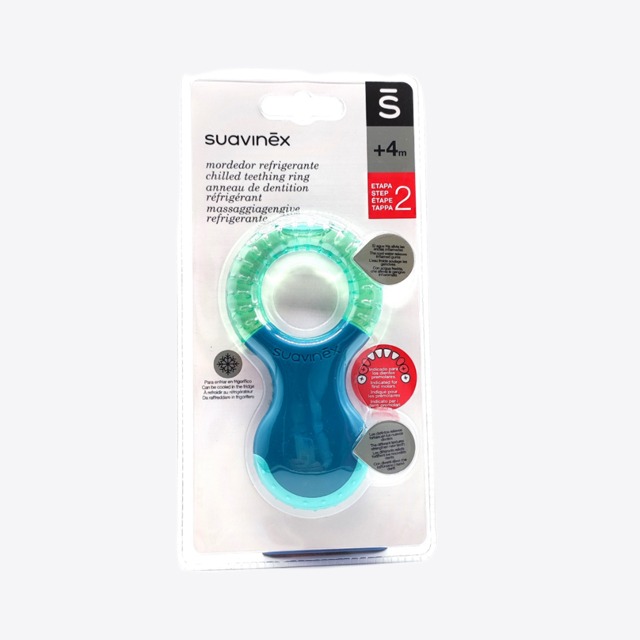 Suavinex mordedor refrigerante +4m está indicado para los dientes premolares. Con agua destilada que fría alivia las encías inflamadas y distintos relieves que fortalecen los nuevos dientes.