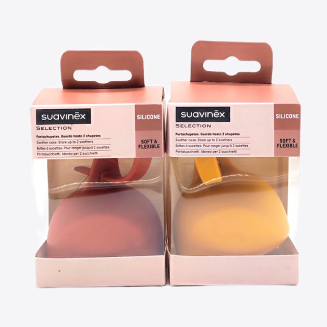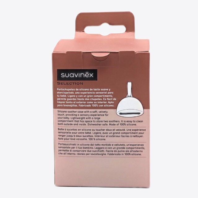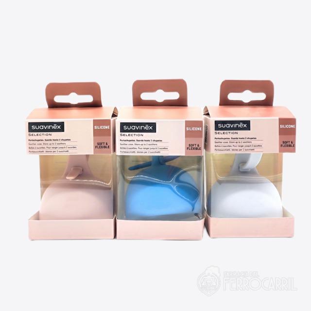 Suavinex portachupetes de silicona de tacto suave y aterciopelado, una experiencia sensorial para tu bebé. Ligero y con un gran comportamiento, permite guardar hasta dos chupetes. Es fácil de limpiar tanto el exterior como su interior.