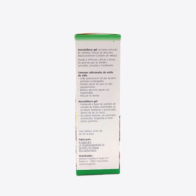 Aesculaforce piernas cansadas gel 100 g contiene extracto de semillas frescas de Aesculus hippocastanum (castaño de Indias).