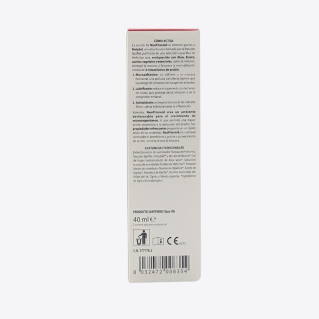 Producto sanitario a base de complejos vegetales que tiene una accion protectora de la mucosa anorrectal, es útil para contrarrestar las molestias (dolor, escozor y prurito), la irritación y la inflamación presentes en caso de hemorroides.