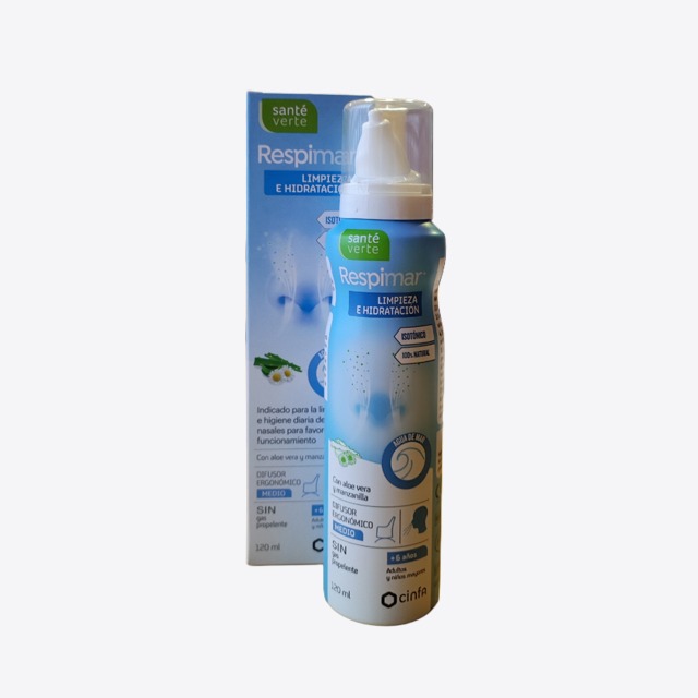Respimar limpieza e hidratación 120 ml es una solución de agua de mar isotónica (0.9% NaCl) rica en ingredientes provenientes del mar (sales minerales i oligoelementos) así como de extractos naturales de Aloe Vera y Manzanilla.