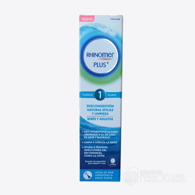 Rhinomer plus fuerza 1 suave es agua de mar hipertónica 100% de spray suave descongestiona la nariz obstruida, por ejemplo en caso de gripe y refriado.
