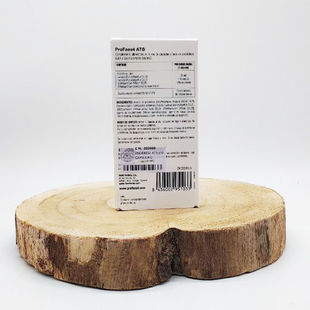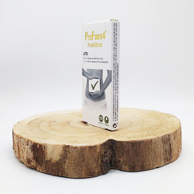 ProFaes4 ATB es un complemento alimenticio en forma de cápsulas a base de probióticos Lab4 y Saccharomyces boulardii.