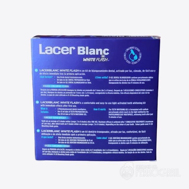 Lacer Blanc kit dental blanqueador es un kit de blanquamiento dental, activado por luz, cómodo, de fácil uso y de efecto inmediato tras la primera aplicación.