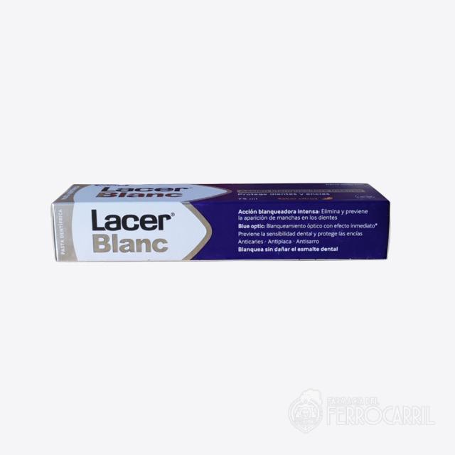 Lacer Blanc pasta dentífrica sabor citrus a es una pasta blanqueadora, que devuelve a los dientes su color natural, brillo y suavidad sin dañar el esmalte dental. Gracias a su formulación de acción blanqueadora intensa, elimina y previene la aparición de manchas en los dientes. Además, incorpora un agente óptimo azul (Blue optic), que proporciona a los dientes una apariencia más blanca de forma inmediata.