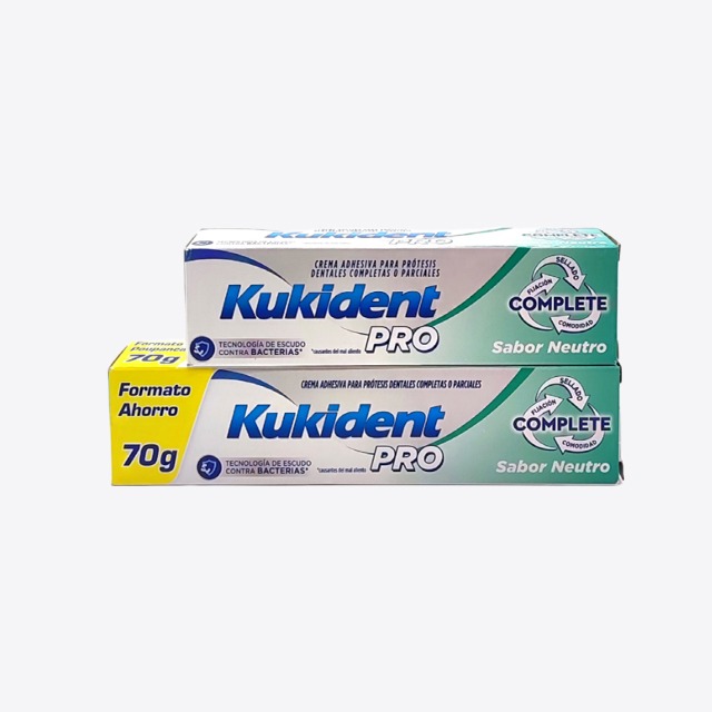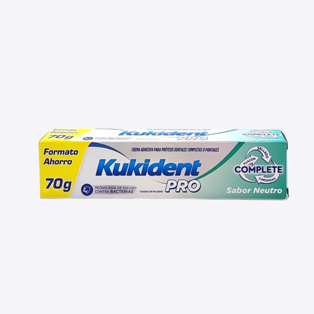 Kukident pro complete es una crema adhesiva para prótesis dentales diseñada especialmente para un cuidado completo, proporcionando una gran fijación y comodidad durante todo el día.