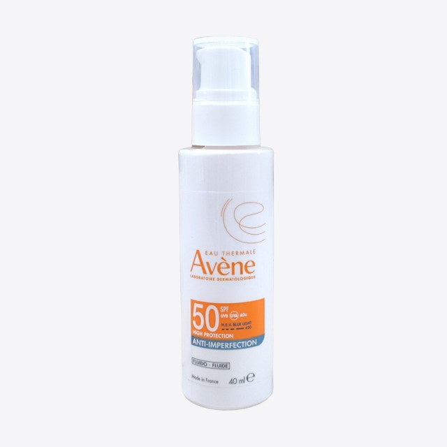 Avene eau thermale fluido antiimperfecciones spf 50 40 ml ofrece una alta protección diaria contra los rayos UVB, UVA y la luz azul HEV para prevenir las marcas de acné.