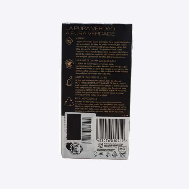 Durex conexión total 10 preservativos echos de electrónicamente testado. Además cada lote pasa por 5 text de clidad.